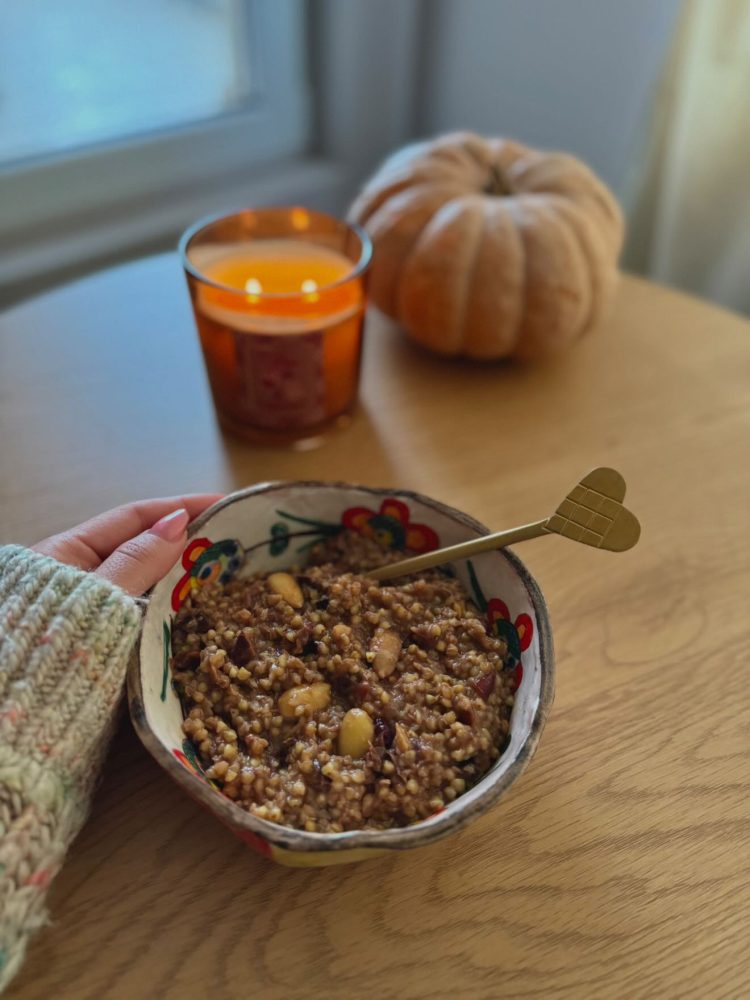 Тази нежна аюрведична закуска с елда носи усещането за утринен ритуал, който събужда сетивата с мекота и топлина.